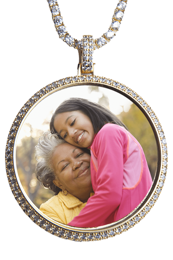 - High Quality Premium Metal Rose Gold Finish with high quality lab designed stones embedded around the image of your choice giving a third dimensional look.